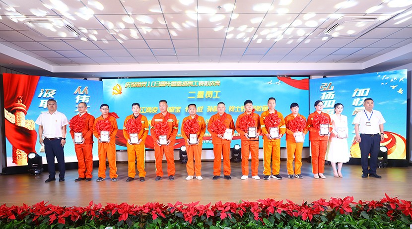 為鼓勵先進、創(chuàng)樹典型,進一步激發(fā)全公司廣大員工干事創(chuàng)業(yè)活力,不斷推動“ 敢為、敢闖、敢干、敢首創(chuàng)”在全公司上下蔚然成風,助力公司高質(zhì)量跨越式發(fā)展。6月21日下午,臺北(華茂)公司“展風采·黨旗頌·強發(fā)展”星級員工頒獎文藝演出在環(huán)保裝備產(chǎn)業(yè)園圓滿落幕。公司領(lǐng)導班子,各單位、部門干部職工觀看演出,特邀請集團黨建人資、工會等同志到場觀摩指導。