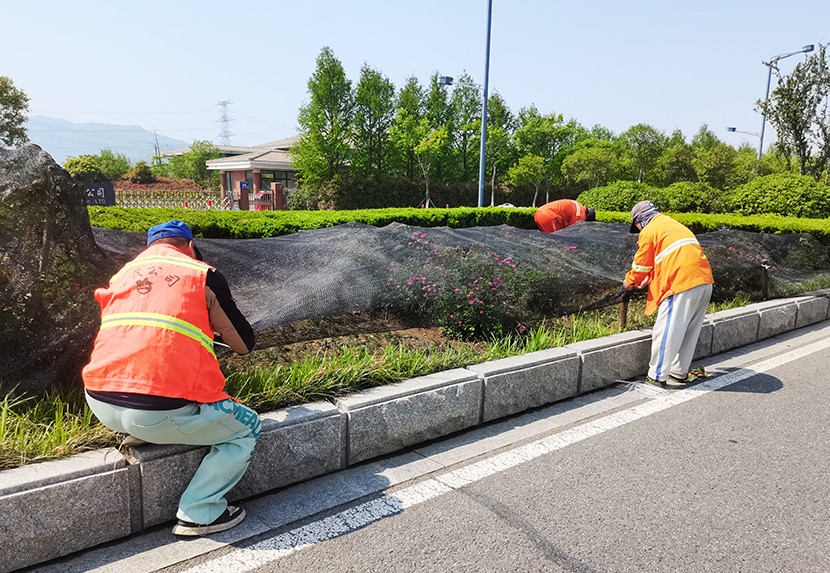 五一期間現(xiàn)場(chǎng)一片繁忙景象。養(yǎng)護(hù)工人們采取錯(cuò)峰作業(yè),避開(kāi)交通高峰,手持高壓水槍 ,對(duì)轄區(qū)東方大道、匯晶路、顧圩路兩側(cè)新栽植的苗木進(jìn)行精準(zhǔn)澆灌,確保新栽苗木存活率;東方大道養(yǎng)護(hù)班在孫班長(zhǎng)的帶領(lǐng)下,對(duì)東方大道中央隔離帶內(nèi)進(jìn)行補(bǔ)植麥冬,采取覆蓋遮陽(yáng)網(wǎng)等措施,以減少水分蒸發(fā)和避免陽(yáng)光灼傷。同時(shí)充分利用雨后土壤松軟,組織工人對(duì)轄區(qū)綠化帶內(nèi)的雜草、雜樹(shù)進(jìn)行清除。