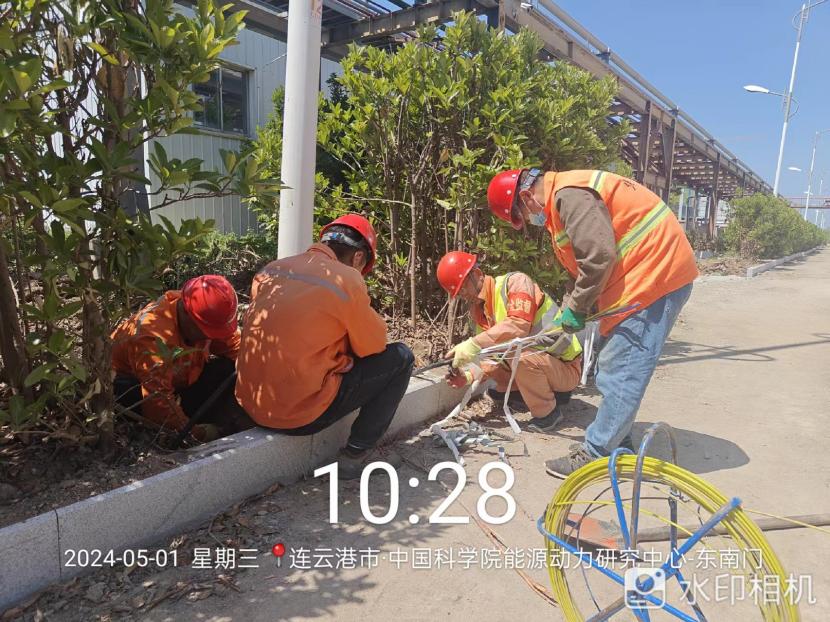在中科院的路燈電纜施工現(xiàn)場(chǎng),2000來(lái)米的電纜穿管工程時(shí)間緊任務(wù)重!舊路燈基座電纜孔全被泥土堵塞,穿線相當(dāng)困難!在“老黃?!眴桃猿蓭ьI(lǐng)下,市政班組全員在崗,集思廣益克服困難。大家顧不上烈日當(dāng)頭、蚊蟲叮咬,合起號(hào)子加油干,確保兩天拿下全部工程量。