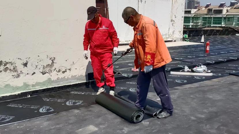 在昌圩湖大酒店樓頂防水工程施工現(xiàn)場(chǎng),因屋面漏水嚴(yán)重影響酒店日常經(jīng)營(yíng)。為了趕在雨季來(lái)臨之前完成全屋面防水工程,節(jié)日期間,有著“臺(tái)北防水第一人”稱號(hào)的丁祥生班長(zhǎng)帶領(lǐng)班組成員連日奮戰(zhàn)在施工現(xiàn)場(chǎng)。隨著噴槍烘烤著雨虹防水卷材,一米米的鋪設(shè)前進(jìn)不斷縮短著距離。