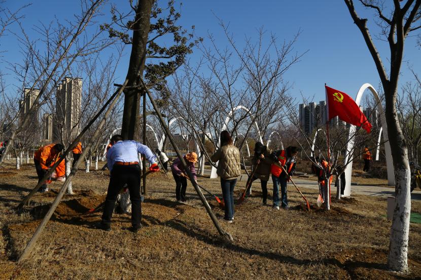 活動(dòng)期間,公司黨委組織開展了“打樹圍”黨員實(shí)踐勞動(dòng)活動(dòng)。廣大黨員們分工合作、配合默契,干勁十足,發(fā)揚(yáng)不怕苦、不怕臟的精神,將創(chuàng)智綠園內(nèi)樹木周邊翻耕、除草、“打樹圍”,活動(dòng)現(xiàn)場(chǎng)熱火朝天,大家在活動(dòng)中主動(dòng)戴黨徽,沖鋒在前做表率,讓黨旗在一線高高飄揚(yáng)。
