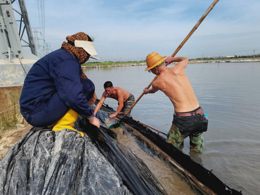 回程途中,我們又經(jīng)過鈣液生產(chǎn)灘地,廣大職工在鈣液銷售旺季,趕進(jìn)度、搶工期。在海濱泵站,徐松保師傅正在室外查看鈣液計(jì)量表,為鈣液車開具單據(jù)。據(jù)了解,他一天在室外要為20余輛鈣液車開單子,中午吃頓飯出出進(jìn)進(jìn)幾次才能吃完,衣服濕了干,干了濕,十分辛苦!在先鋒泵站,程輝師傅撩起工作服擦了擦臉上的汗水,繼續(xù)將潛水泵安置到已廢棄的灘地里,把灘地里的雨水抽干,將廢棄的灘地利用起來晾曬低濃度的鈣液,解決銷售旺季成品鈣液供不應(yīng)求難題。用廣大職工的話:天氣再熱,困難再多,也擋不住我們沖刺生產(chǎn)18萬方鈣液的腳步。