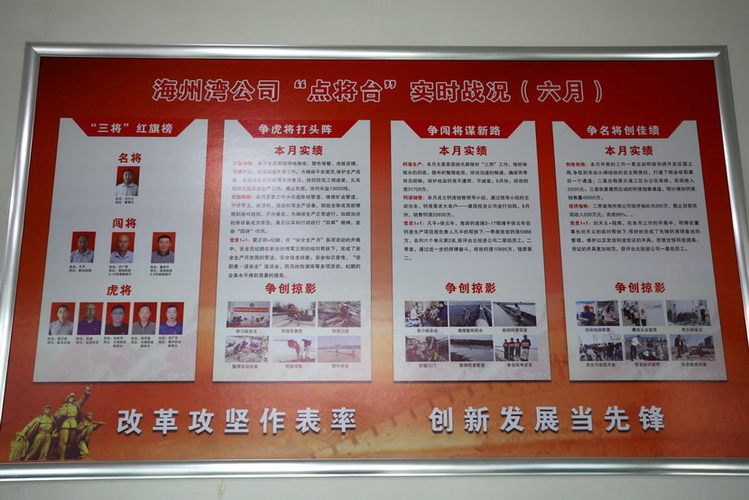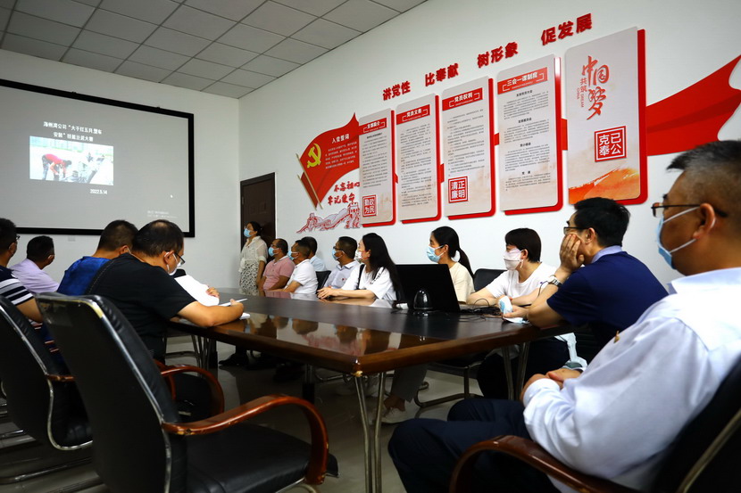 與會(huì)人員邊看邊聽(tīng)講解海州灣黨支部規(guī)范化展板和本月書記項(xiàng)目的落實(shí)情況,以及在海州灣黨建活動(dòng)室觀摩學(xué)習(xí)了上半年黨建基礎(chǔ)臺(tái)賬和活動(dòng)影像。各黨支部就基層黨組織規(guī)范化及書記項(xiàng)目“點(diǎn)將臺(tái)”的落實(shí)情況作了匯報(bào)交流。黨委副書記楊善革針對(duì)各支部的黨建工作情況作了詳細(xì)的點(diǎn)評(píng),指出各支部黨建工作中存在的不足,并要求各支部立即整改。