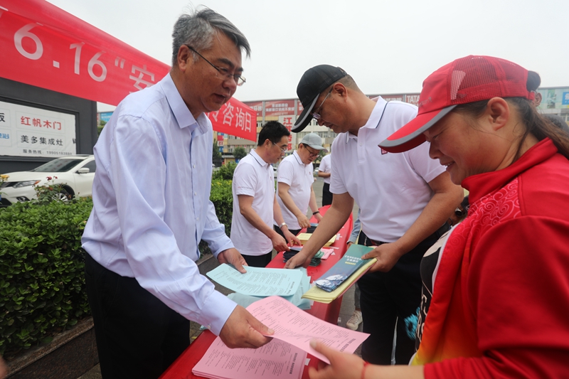 今年6月是第20個(gè)全國(guó)安全宣傳月。6月16日,投資公司領(lǐng)導(dǎo)班子全員參加,圍繞“落實(shí)安全責(zé)任,推動(dòng)安全發(fā)展”主題,組織20余名安全管理人員在光伸建材廣場(chǎng)開展“6.16安全生產(chǎn)宣傳咨詢?nèi)铡被顒?dòng)。