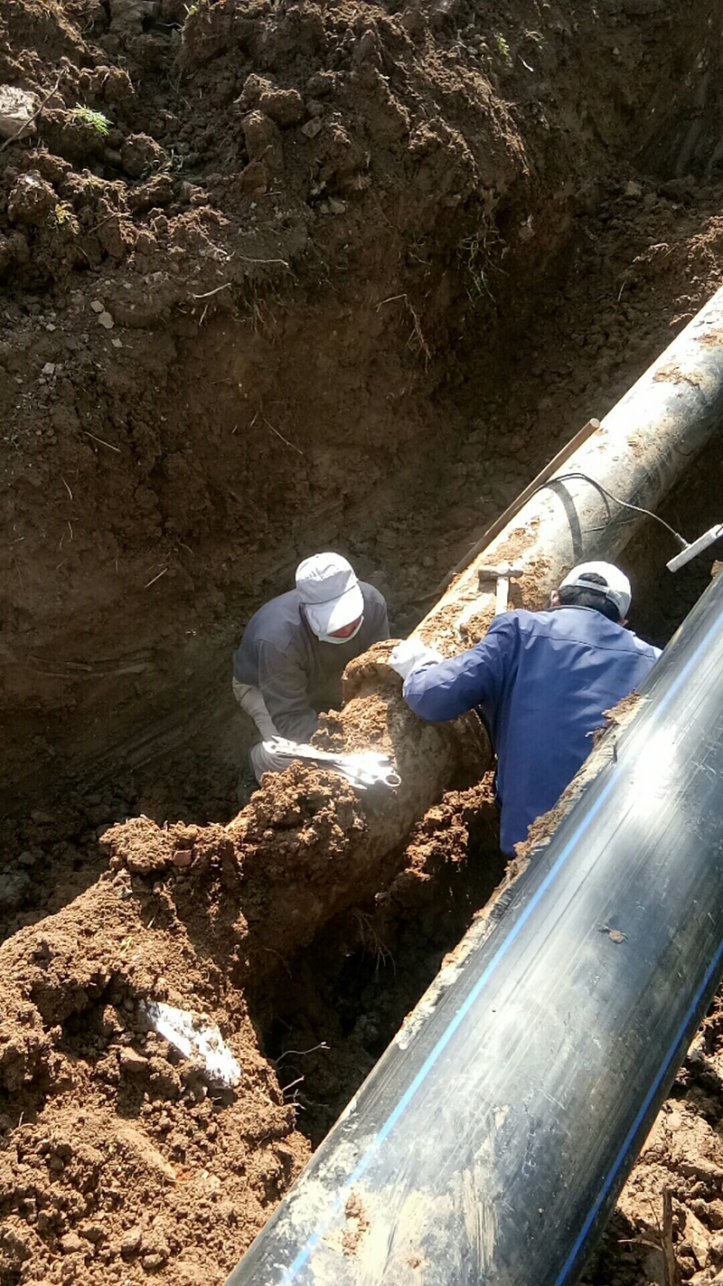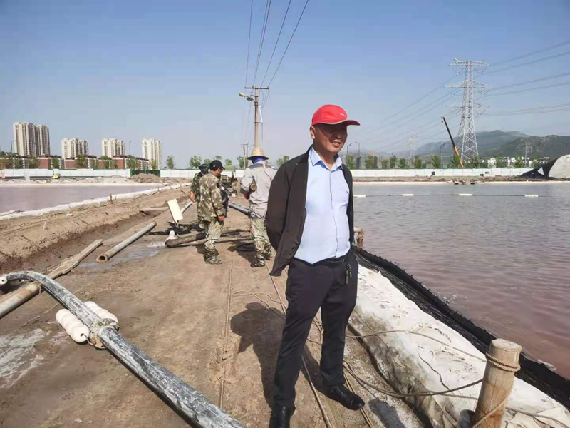 鏡頭四:新光路鹽河邊被開(kāi)發(fā)區(qū)污水管道施工損壞的灌西鈣液管道,搶修工作正在緊鑼密鼓的進(jìn)行中。爭(zhēng)取早一天完成就能早一天開(kāi)機(jī)打鹵,將損失減少到最小。