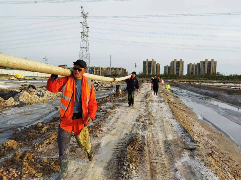 鏡頭三:“大家抓點(diǎn)緊哦,咱可是立了軍令狀的”供鹵組組長(zhǎng)趙士柱干起活來(lái)真是沒(méi)說(shuō)的。這次開(kāi)發(fā)區(qū)造價(jià)4萬(wàn)余元的鹽池路新建橋梁影響鈣液管道遷建工程時(shí)間緊,利用兩天必須拿下,一定要保證五一假期鈣液銷售輸送管道正常。