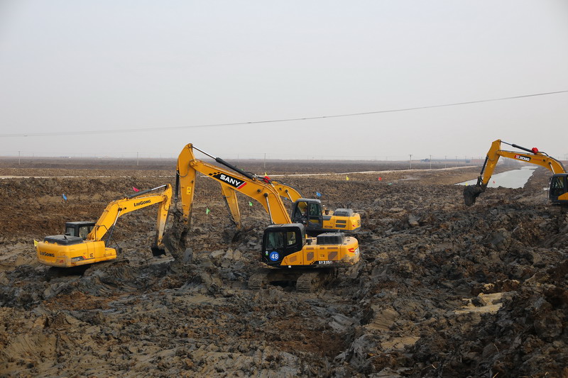 ? ? ? ? “本周,開塔河工程一定要實現(xiàn)引水入池......”根據(jù)公司作戰(zhàn)指令,養(yǎng)殖發(fā)包戰(zhàn)工地上,十余臺大型挖掘機一字排開,緊張有序作業(yè)。