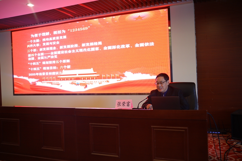 下半場,張校長從一個主題,推動高質(zhì)量發(fā)展;兩件大事,發(fā)展與安全;三個新,新發(fā)展理念、新發(fā)展階段、新發(fā)展格局;新四個全面,全面建設(shè)社會主義現(xiàn)代化國家、全面深化改革、全面依法治國、全面從嚴(yán)治黨;“十四五”規(guī)劃堅持五個原則;“十四五”規(guī)劃目標(biāo),六個新;2035年遠(yuǎn)景目標(biāo)建議九項措施等九個方面解讀了全會精神的“新征程 新理念 新格局 新愿景”。