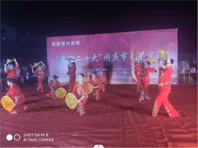 ? ?為迎接黨的二十大勝利召開,以良好的精神風(fēng)貌向祖國(guó)73周年獻(xiàn)禮,豐富臺(tái)北鹽場(chǎng)小區(qū)黨員群眾精神文化生活,營(yíng)造歡樂(lè)的節(jié)日氛圍。9月30日晚,由猴嘴街道昌圩社區(qū)新時(shí)代文明實(shí)踐站主辦,臺(tái)北猴嘴辦事處承辦的“喜迎二十大”為主題的國(guó)慶節(jié)文藝匯演在猴嘴昌圩小區(qū)精彩開演,吸引了眾多鹽場(chǎng)黨員群眾參與及觀看。?