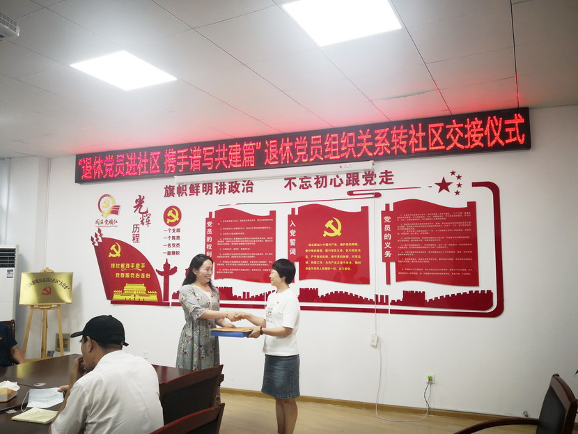 黨員組織關(guān)系規(guī)范轉(zhuǎn)接是事關(guān)黨員黨性和組織觀念的重要工作,是加強基層黨組織建設(shè)的基礎(chǔ)性工作。此次為退休黨員社會化管理工作啟動以來移交到社區(qū)的退休黨員舉辦組織關(guān)系轉(zhuǎn)接儀式,標(biāo)志著此項工作已經(jīng)步入了正?;壍溃矠楹罄m(xù)新增退休黨員“即退即辦”常態(tài)化移交工作打好了基礎(chǔ)。