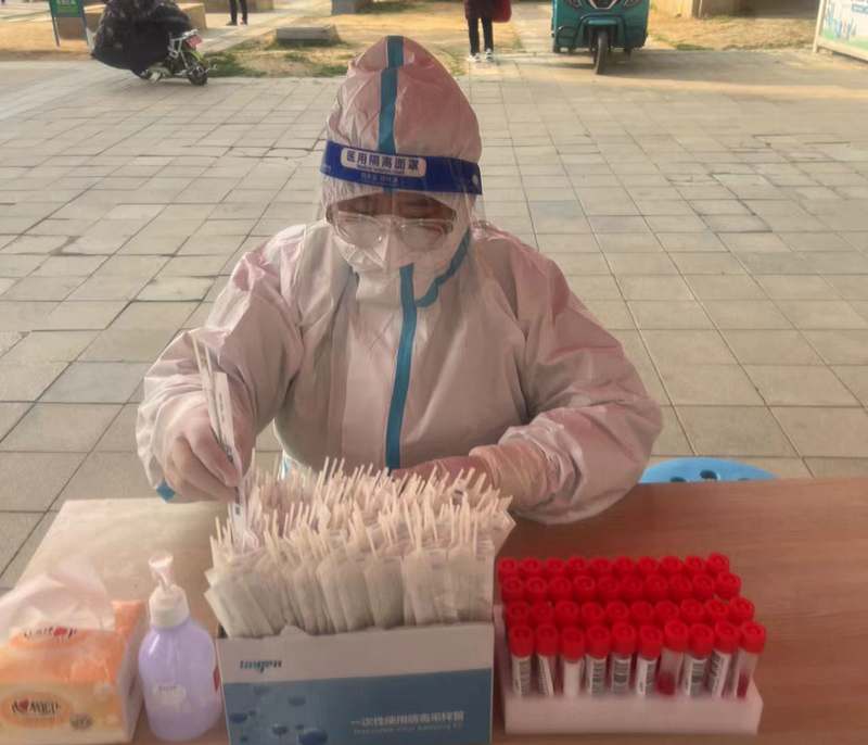 ? 8:30,我被分配了協(xié)助醫(yī)護人員進行核酸采樣,在等待醫(yī)生來的空閑時間,“偷默默”自拍了一張;