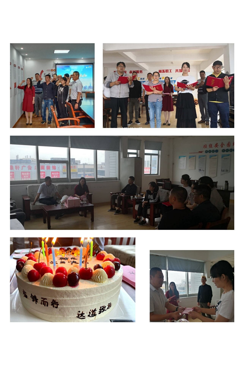 書(shū)記致辭。為黨員同志送上暖心祝福話(huà)語(yǔ),向職工群眾提出爭(zhēng)先奮進(jìn)希冀,替臨達(dá)公司樹(shù)立更進(jìn)一步目標(biāo)。重溫誓詞。進(jìn)一步增強(qiáng)黨性,牢記黨的宗旨,恪守黨的紀(jì)律,堅(jiān)定理想信念,充分發(fā)揮先鋒模范作用。贈(zèng)送賀卡。書(shū)記親手為黨員同志們制作賀卡、寫(xiě)下寄語(yǔ),送到黨員同志們的手中。集體誦讀。全體職工高聲朗誦了詩(shī)詞《我的祖國(guó)》,激發(fā)愛(ài)國(guó)熱情,陶冶愛(ài)國(guó)情操。活動(dòng)最后,公司工會(huì)為職工精心準(zhǔn)備了豐盛的生日餐,讓職工深深體會(huì)到來(lái)自“娘家人”的溫暖。