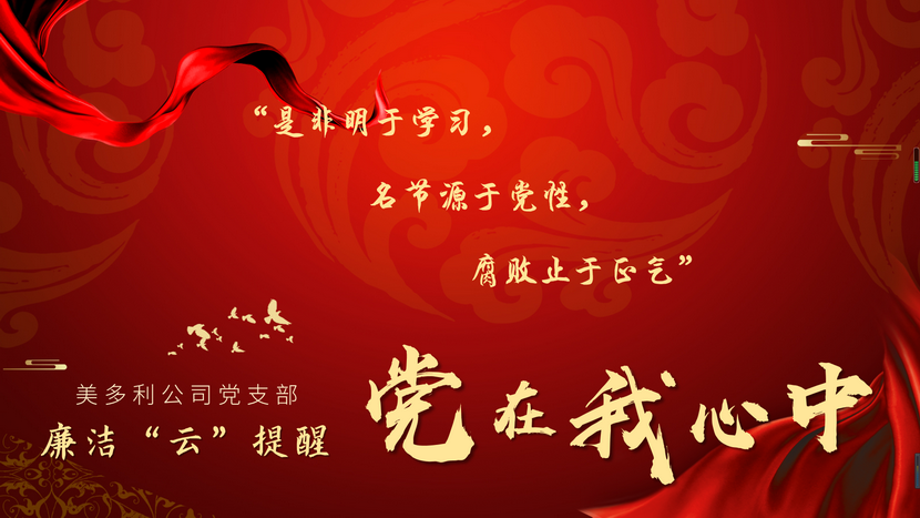 “是非明于學(xué)習(xí),名節(jié)源于黨性,腐敗止于正氣”,“撐起自律的綠傘,秉公道執(zhí)仁政,守得四季常青,為廉政保駕;豎起正義的風(fēng)帆,劈歪風(fēng)斬邪浪,迎來海闊天空,為廉潔護航。”黨的一百零一周年生日來臨之際,美多利公司全體黨員收到支部發(fā)送的廉潔提醒短信。