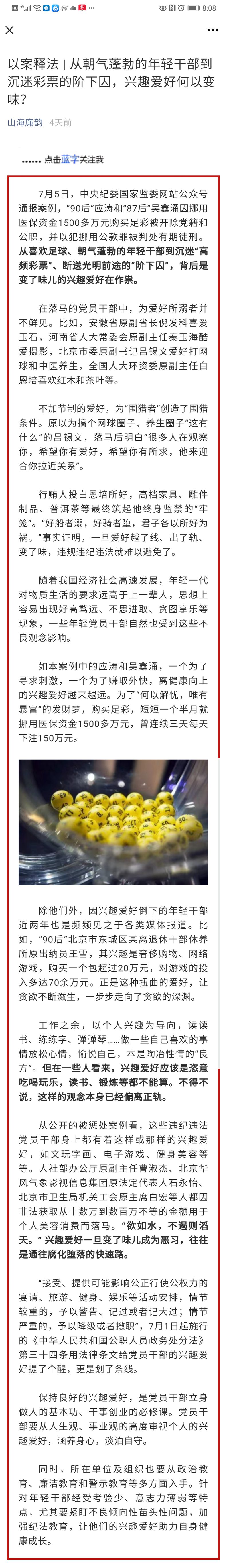 [以案釋紀(jì)]從朝氣蓬勃的年經(jīng)干部到沉迷彩票的階下囚,興趣愛(ài)好何以變味?
