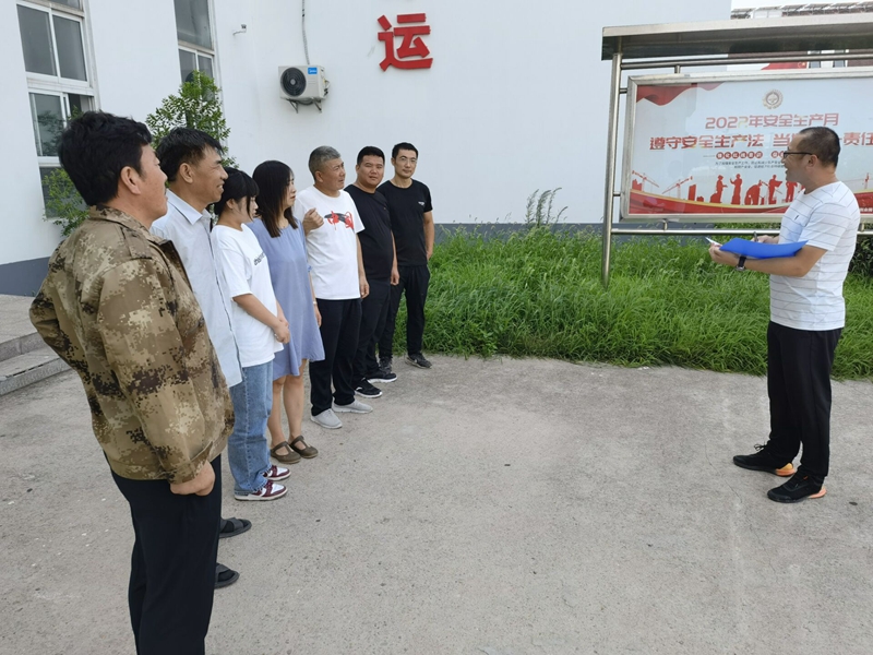 演習(xí)中,安全管理人員現(xiàn)場(chǎng)講解預(yù)防中暑措施,中暑急救常識(shí)。