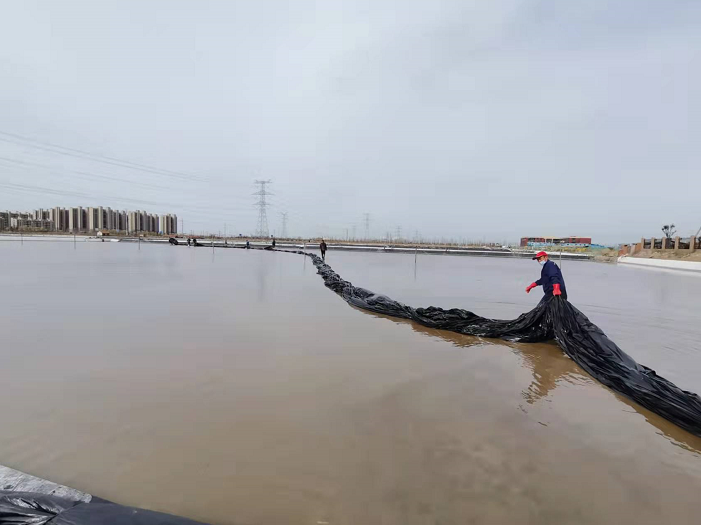 不負春光早起步,大干快上正當時。隨著我市疫情剛一解封,海州灣公司礦鹽復(fù)產(chǎn)工程立即開啟加速“奔跑”模式,經(jīng)過前期充分的準備和精心部署,在3月31日疫情解封的第一天,安排貨車將第一批塑布運輸?shù)轿?。次日早?/span>7點,海州灣公司和翔立分公司全體員工在先鋒班組集合,開啟第一輪塑布安裝以及鹵水灌池工作,搶抓“小滿”前后十八天的池內(nèi)長鹽黃金期。