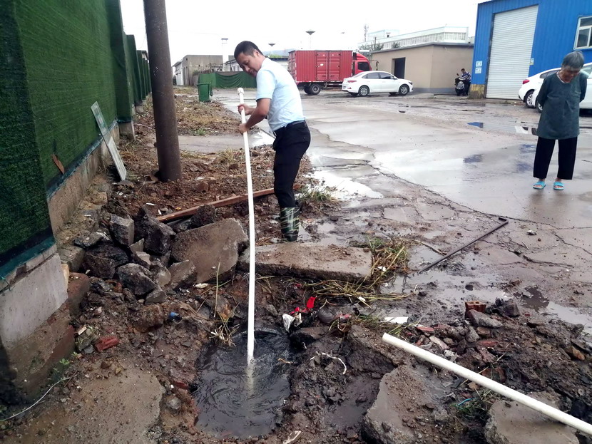 ? ? 王愛軍同志在巡查過程中發(fā)現臨達公司院外積水現象,快速展開了疏通工作。接到消息后,杜紅波、許邱白、孫健、金立根同志也加入了進來,他們手持鐵锨,一锨一锨地將下水道內的雜物逐一清理出來,遇到特別難清理的石頭、磚塊,他們甚至俯身探進污水坑中,用手把垃圾一塊一塊地清理出來,直至下水通道完全通暢。經過兩個多小時的努力,下水道口雜物被清理干凈,積水順利排出,方便了來往行人及車輛的通行。