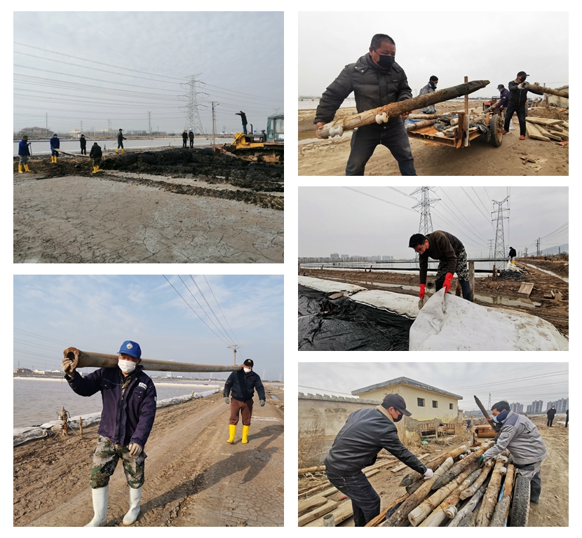 疫情來襲和征地影響給大浦工區(qū)2020年的原鹽生產(chǎn)任務(wù)帶來了的重大壓力,面對嚴(yán)峻的形勢,大浦工區(qū)迅速調(diào)整生產(chǎn)機制,制定應(yīng)對措施,將受征地影響的14、15班調(diào)整至先鋒東灘生產(chǎn)鈣鹽;將兩塊閑置地塊進(jìn)行改造為春灌塑池,進(jìn)一步擴大結(jié)晶面積;鋪設(shè)管道將已征塑池底碴鹽泡碴制鹵輸送到二組,對駁運完鹽的廩基沖化粉鹽制鹵,為原鹽生產(chǎn)降單耗打好基礎(chǔ)。全工區(qū)上下呈現(xiàn)出“大鬧生產(chǎn)”的良好氛圍,大浦人用奮斗唱響了最美的“鹽之歌”。