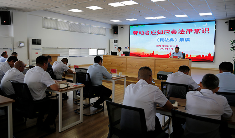 5月24日上午,徐圩投資公司工會(huì)在悅升環(huán)衛(wèi)管理中心舉辦《民法典》專題培訓(xùn)班,特邀市總工會(huì)法律工作部部長(zhǎng)易懷麗為職工解讀《民法典》基本內(nèi)容,同步開展市總工會(huì)“勞動(dòng)法治宣傳進(jìn)企業(yè)”活動(dòng),推動(dòng)職工法律培訓(xùn)與法律咨詢一體化開展,增強(qiáng)職工依法維權(quán)意識(shí),規(guī)范依法從業(yè)行為。公司80余名干部職工一起參加培訓(xùn)活動(dòng)。