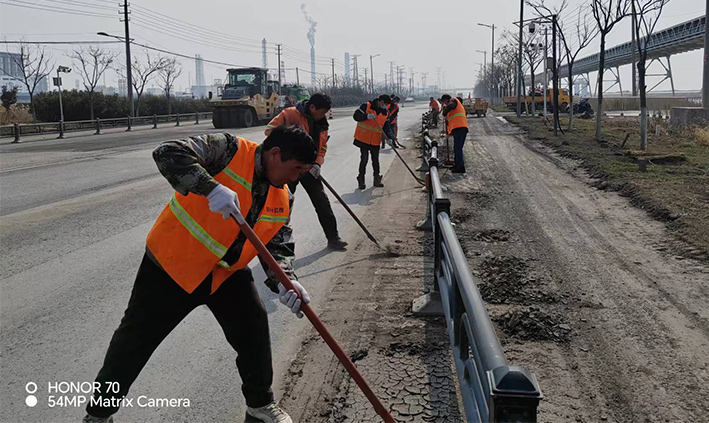 3月15日,該分公司近15余名黨員突擊隊員,在黨支部號召下,無視春光照曬、三人一組、兩個一對、揮動手中鐵銑,無懼泥土揚(yáng)塵四起,清除蘇海路,港前卡口護(hù)欄下車輛拋灑泥土2000多米長,人工清掃護(hù)欄內(nèi)石子30多處,車輛轉(zhuǎn)運(yùn)20多車。黨員陳小軍、陳海彬等同志盡管手磨破了,仍然堅守道路最前沿,經(jīng)過30余名隊員兩天持續(xù)奮戰(zhàn),整潔靚麗的路面再次展現(xiàn)石化園區(qū)。