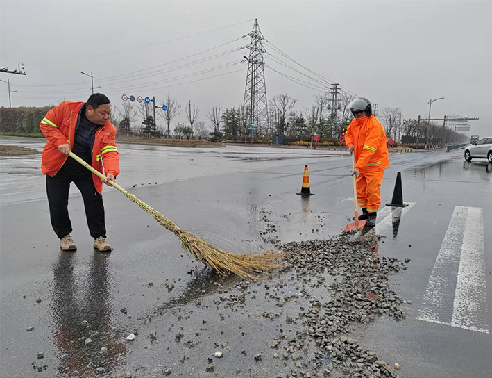 聚焦“兩個作用”、提升應急處理。支部堡壘與先鋒表率作用有力得以彰顯。該分公司黨員生產(chǎn)骨干張學軍、徐習東、陸永柱,巡現(xiàn)時發(fā)現(xiàn)轄區(qū)道路現(xiàn)場車輛拋灑石子,第一時間安全迅速奔赴清理路段,與同事齊心合力揮動手中大掃把,清掃石子近1000多米長,轉運清倒30余車,工作中爭先恐后場景成為雨中道路上最美感人畫面。(楊波)