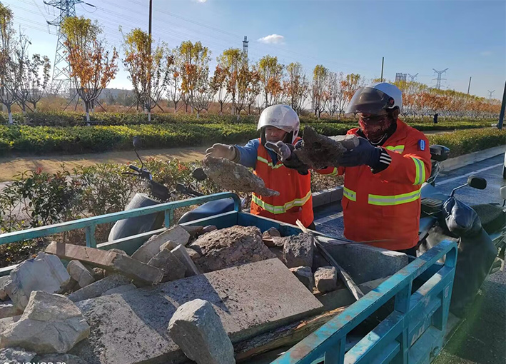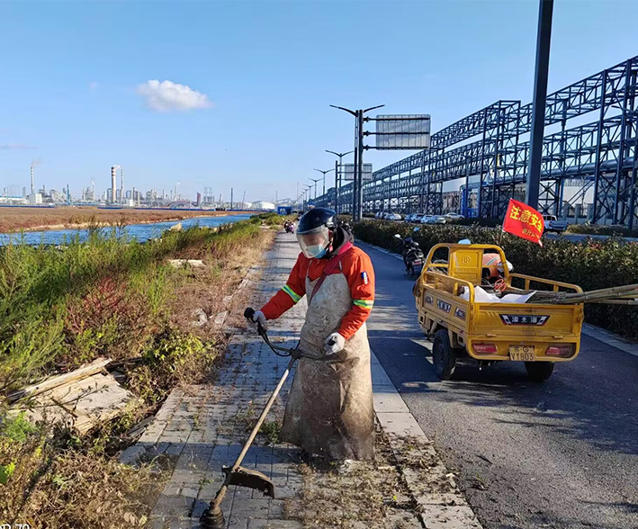 及時配合徐圩城建處理陬山路、石化七消防通道等路段施工產(chǎn)生動態(tài)各種垃圾20多車,再次轉(zhuǎn)運陬山路主道兩側(cè)綠化帶中石塊2000多斤。針對園區(qū)建設發(fā)展情況,序時推進石化五道,四道樣板路工程打造,組織人員突擊清理輔道雜草近1000余米長,撿拾管廊下各種垃圾300余袋。勞動現(xiàn)場,黨員生產(chǎn)骨干薛明柱、朱海勇等同志先鋒示范閃亮道路最前沿,用實際行動保障園區(qū)美麗環(huán)境。