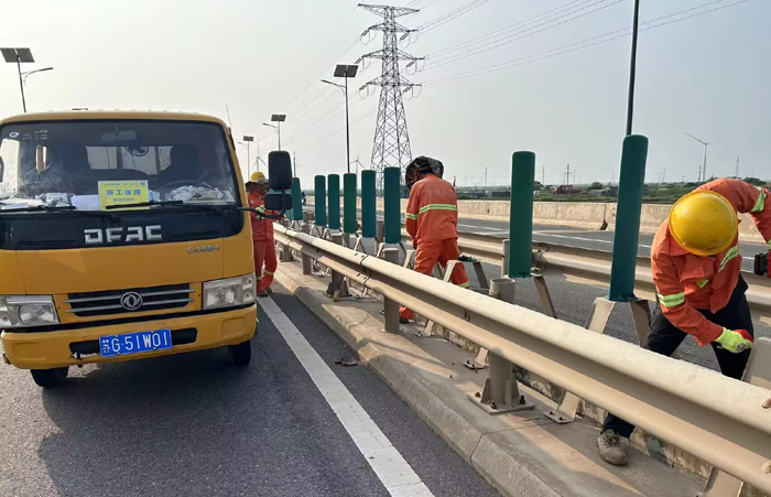 9月11日下午,市政分公司開(kāi)展橋梁中分帶缺損防眩板專項(xiàng)維修行動(dòng),工作人員加班加點(diǎn),攜手奮戰(zhàn),完成維修任務(wù),排除安全隱患,保障過(guò)往車(chē)輛行駛安全。